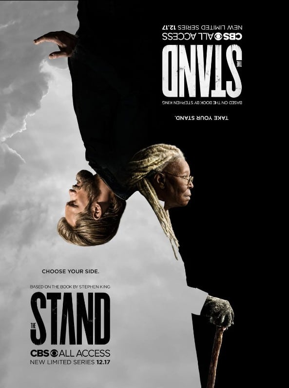 Sur cette affiche, la symétrie centrale est utilisée de manière très marquée tout en renforçant le contraste entre les deux personnages représentés. Leur disposition tête-bêche crée un effet de pivot autour d’un point central imaginaire, comme si l’image pouvait être retournée pour superposer l’un à l’autre. Cette construction visuelle souligne une opposition entre les deux personnages. La symétrie ne repose pas seulement sur l’inversion des corps, mais aussi sur l’équilibre entre les zones sombres et les zones claires, qui se reflètent d’une moitié à l’autre de l’affiche. Le texte lui-même participe à cette intention : on retrouve le titre à la fois dans le sens normal et inversé, renforçant l’idée d’un monde double ou renversé. Cette symétrie centrale donne à l’affiche une structure forte et symbolique. Elle évoque le choix entre deux camps, deux visions, ou deux forces opposées, tout en guidant le regard vers le centre où se joue l’équilibre fragile entre ces deux pôles.