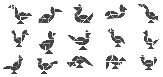 Recomposer les figures suivantes en utilisant l'intégralité des pièces et sans les chevaucher.